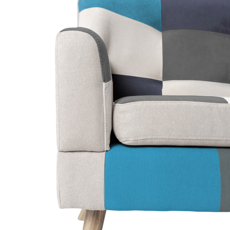 Il rivestimento in stoffa stile patchwork, cucito a mano da artigiani esperti, dona al divano un aspetto unico e ricercato, oltre a una piacevole sensazione di comfort. Ogni dettaglio è curato per valorizzare estetica e qualità costruttiva.