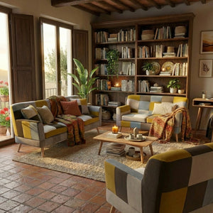 Il rivestimento in stoffa stile patchwork, cucito a mano da artigiani esperti, dona al divano un aspetto unico e ricercato, oltre a una piacevole sensazione di comfort. Ogni dettaglio è curato per valorizzare estetica e qualità costruttiva.