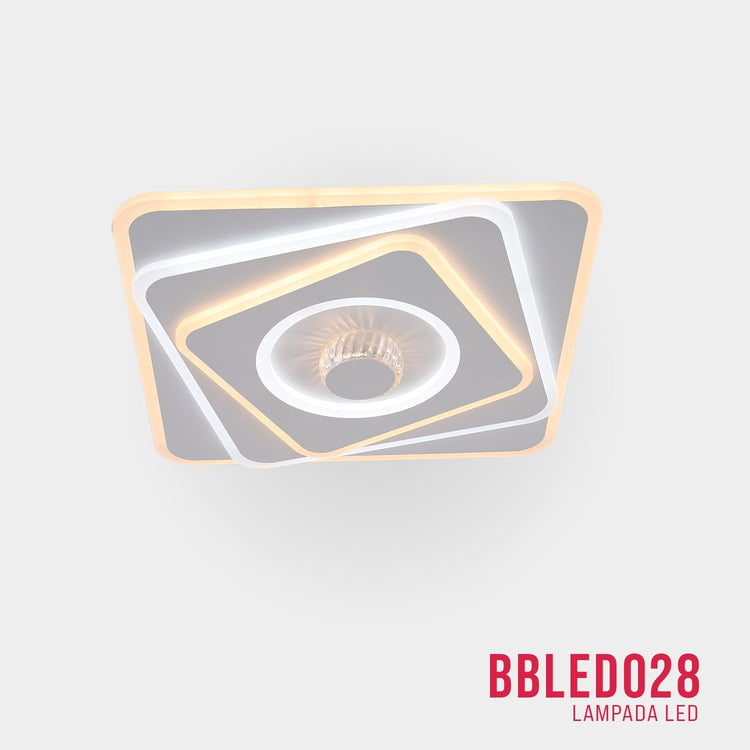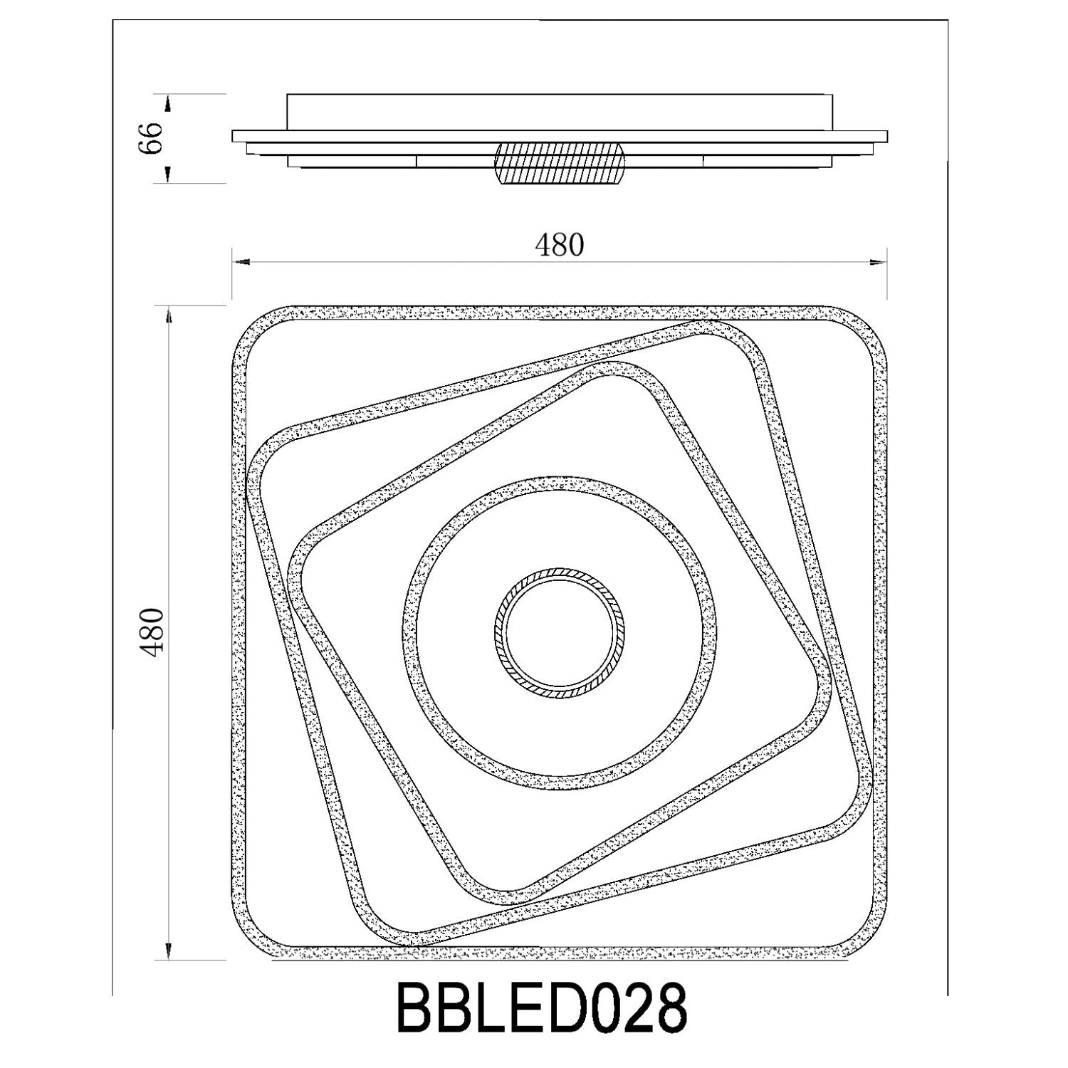 Mod. BBLED028 Dim. ( L x P x A ) : mm. 480 x 480 x 65 , potenza, 100 Watt, Telecomando 2.4 G , Luce Regolabile Naturale, Calda, fredda , Luminosità : lm 6800 , Materiale: metallo ed acrilico. Tensione: 220-240 V. , Imballo: . ( L x P x A ) : mm. 530 x 530 x 200