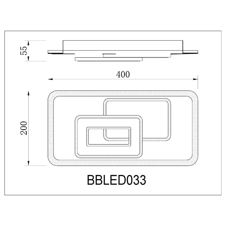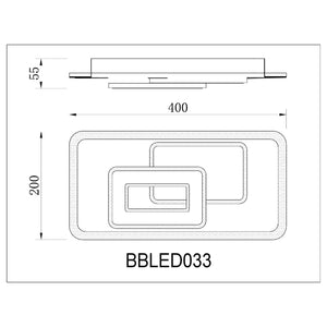 Mod. BBLED033 Dim. ( L x P x A ) : mm. 400 x 200 x 65 , potenza, 45 Watt, Telecomando 2.4 G , Luce Regolabile Naturale, Calda, fredda , Luminosità : lm 4000 , Materiale: metallo ed acrilico. Tensione: 220-240 V. , Imballo: . ( L x P x A ) : mm. 500 x 300 x 200