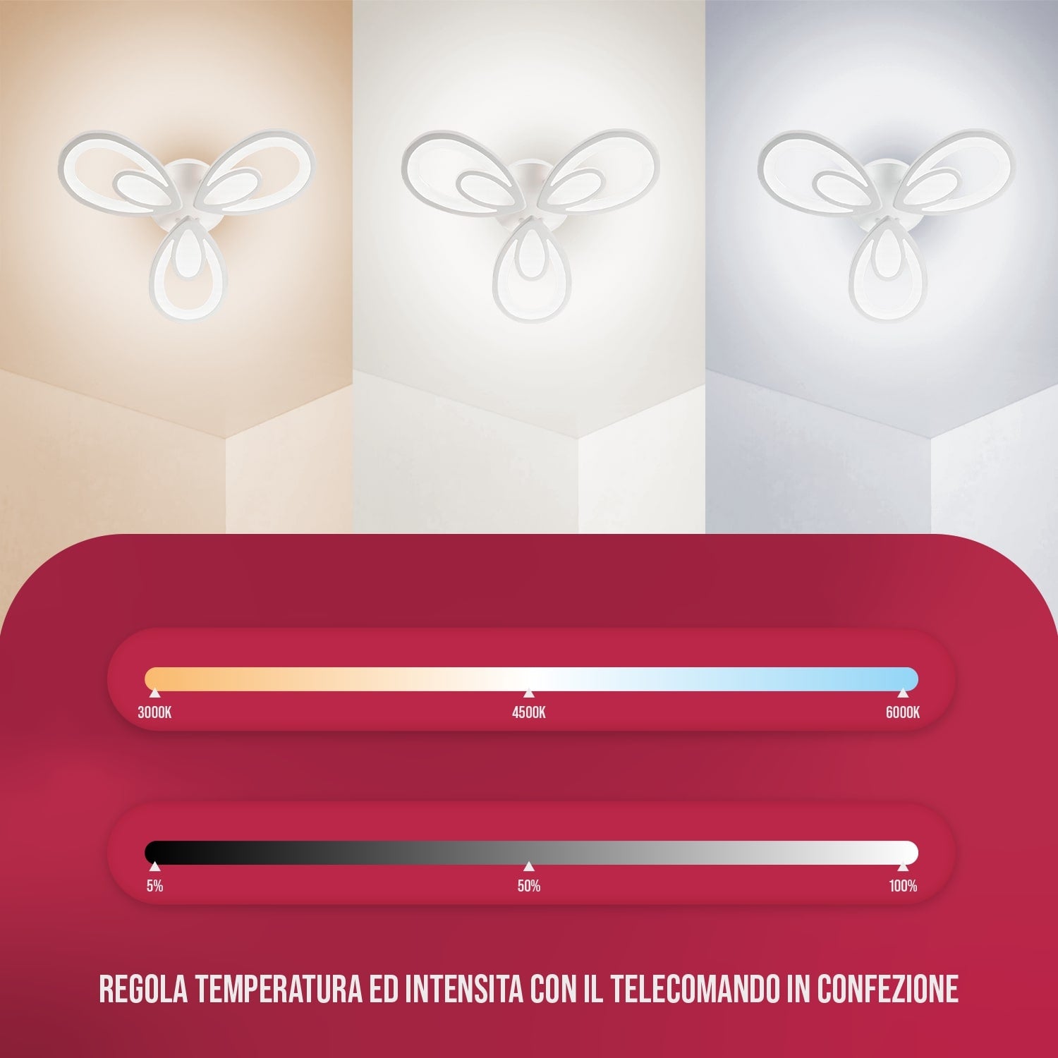 Regolazione con telecomando: Nei lampadari da soffitto BUYBUY i LED sono già installati e non hanno bisogno di essere sostituiti. Includono 3 temperature di colore: luce fredda, naturale e calda, telecomando intelligente, anche la luminosità è regolabile, modalità di illuminazione notturna.