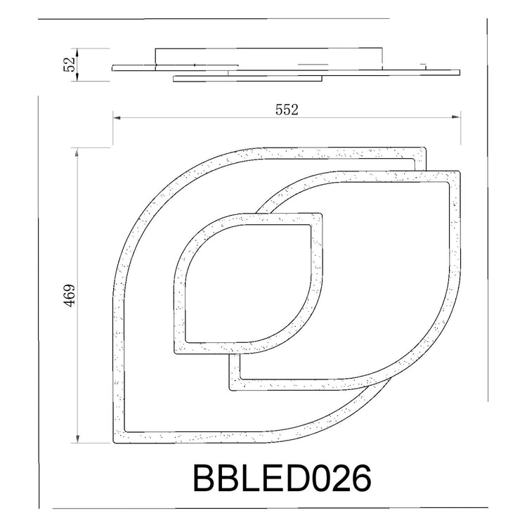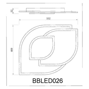 Mod. BBLED026 Dim. ( L x P x A ) : mm. 550 x 470 x 55 , potenza, 65 Watt, Telecomando 2.4 G , Luce Regolabile Naturale, Calda, fredda , Luminosità : lm 5500 , Materiale: metallo ed acrilico. Tensione: 220-240 V. , Imballo: . ( L x P x A ) : mm. 600 x 520 x 150
