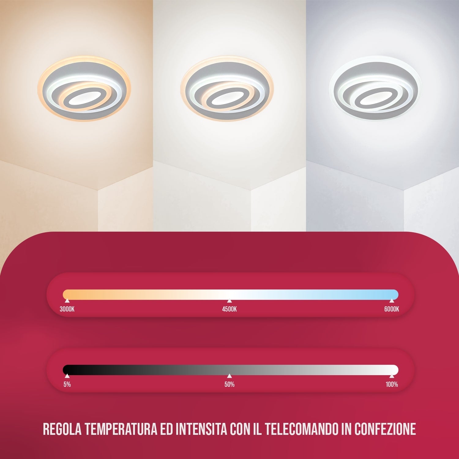 Regolazione con telecomando: Nei lampadari da soffitto BUYBUY i LED sono già installati e non hanno bisogno di essere sostituiti. Includono 3 temperature di colore: luce fredda, naturale e calda, telecomando intelligente, anche la luminosità è regolabile, modalità di illuminazione notturna.