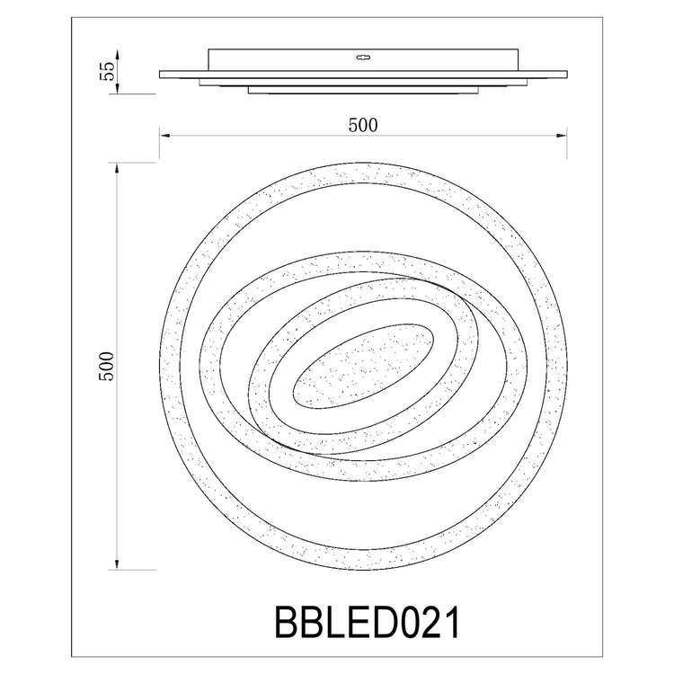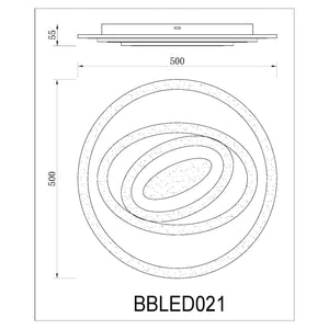 Mod. BBLED021 Dim. ( L x P x A ) : mm. 500 x 500 x 55 , potenza, 70 Watt, Telecomando 2.4 G , Luce Regolabile Naturale, Calda, fredda , Luminosità : lm 5700 , Materiale: metallo ed acrilico. Tensione: 220-240 V. , Imballo: . ( L x P x A ) : mm. 550 x 550 x 200
