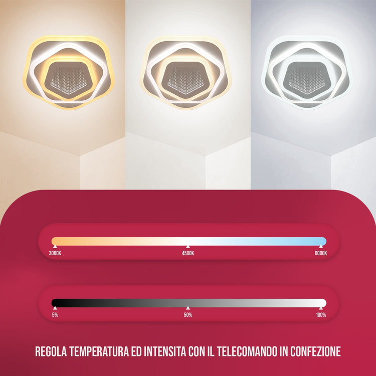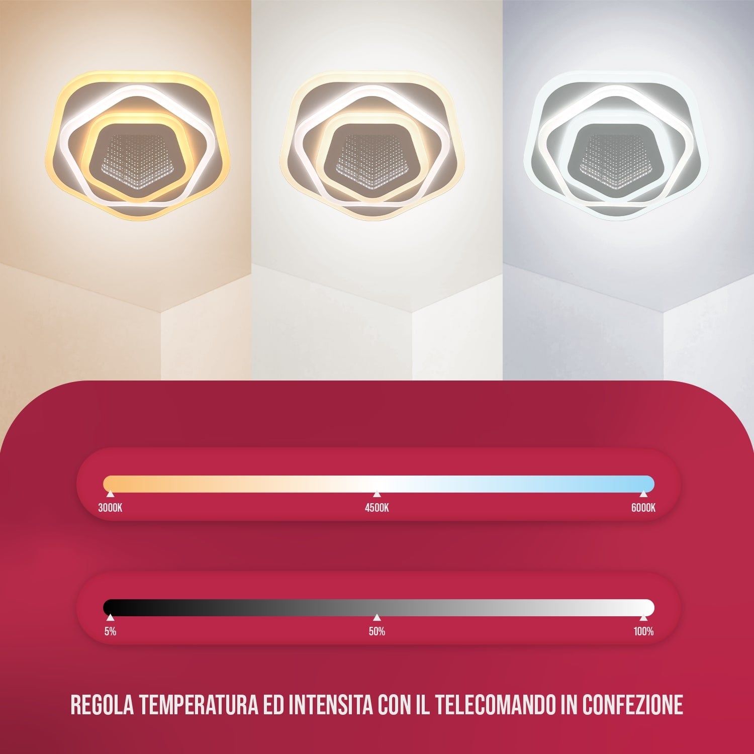 Regolazione con telecomando: Nei lampadari da soffitto BUYBUY i LED sono già installati e non hanno bisogno di essere sostituiti. Includono 3 temperature di colore: luce fredda, naturale e calda, telecomando intelligente, anche la luminosità è regolabile, modalità di illuminazione notturna.