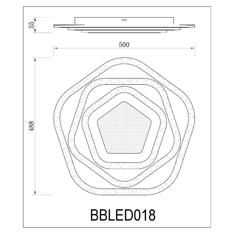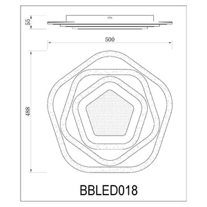 Mod. BBLED018 Dim. ( L x P x A ) : mm. 500 x 500 x 55 , potenza, 77 Watt, Telecomando 2.4 G , Luce Regolabile Naturale, Calda, fredda , Luminosità : lm 5900 , Materiale: metallo ed acrilico. Tensione: 220-240 V. , Imballo: . ( L x P x A ) : mm. 550 x 550 x 150