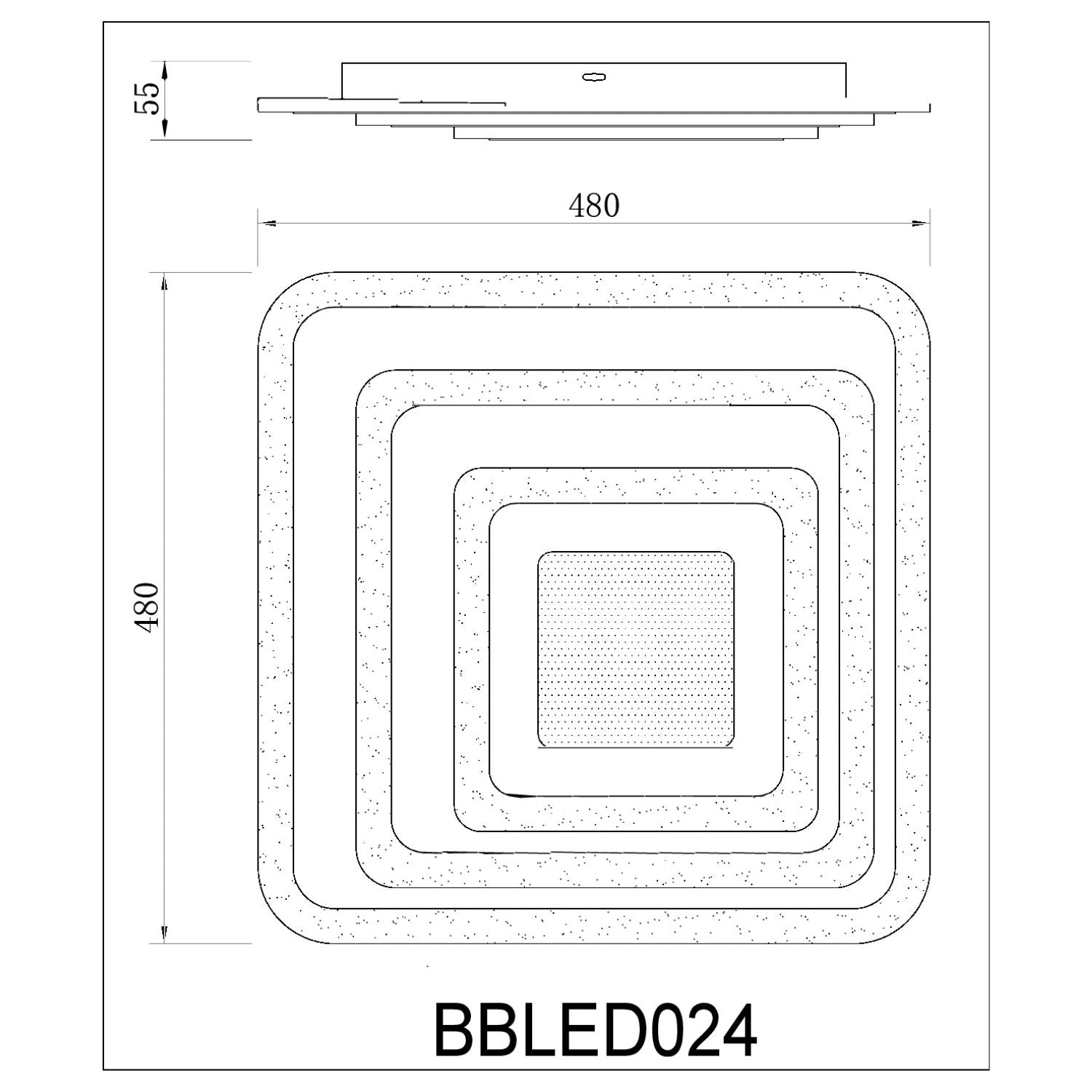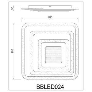 Mod. BBLED024 Dim. ( L x P x A ) : mm. 480 x 480 x 55 , potenza, 81 Watt, Telecomando 2.4 G , Luce Regolabile Naturale, Calda, fredda , Luminosità : lm 6700 , Materiale: metallo ed acrilico. Tensione: 220-240 V. , Imballo: . ( L x P x A ) : mm. 530 x 530 x 150