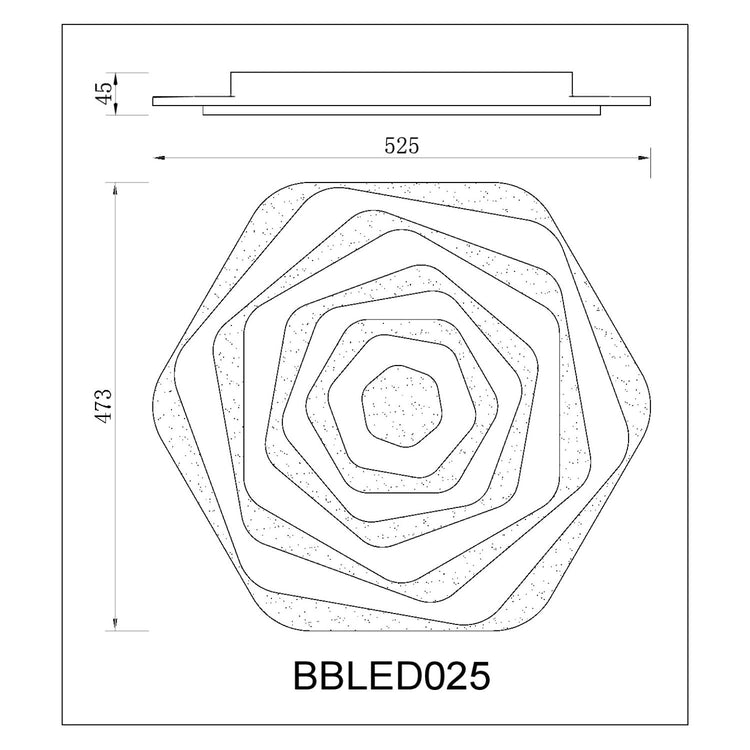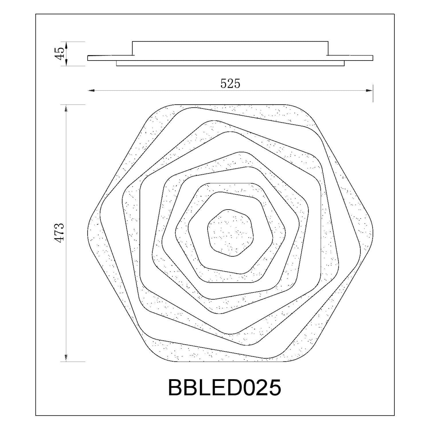 Mod. BBLED025 Dim. ( L x P x A ) : mm. 530 x 530 x 45 , potenza, 85 Watt, Telecomando 2.4 G , Luce Regolabile Naturale, Calda, fredda , Luminosità : lm 5900 , Materiale: metallo ed acrilico. Tensione: 220-240 V. , Imballo: . ( L x P x A ) : mm. 580 x 580 x 150