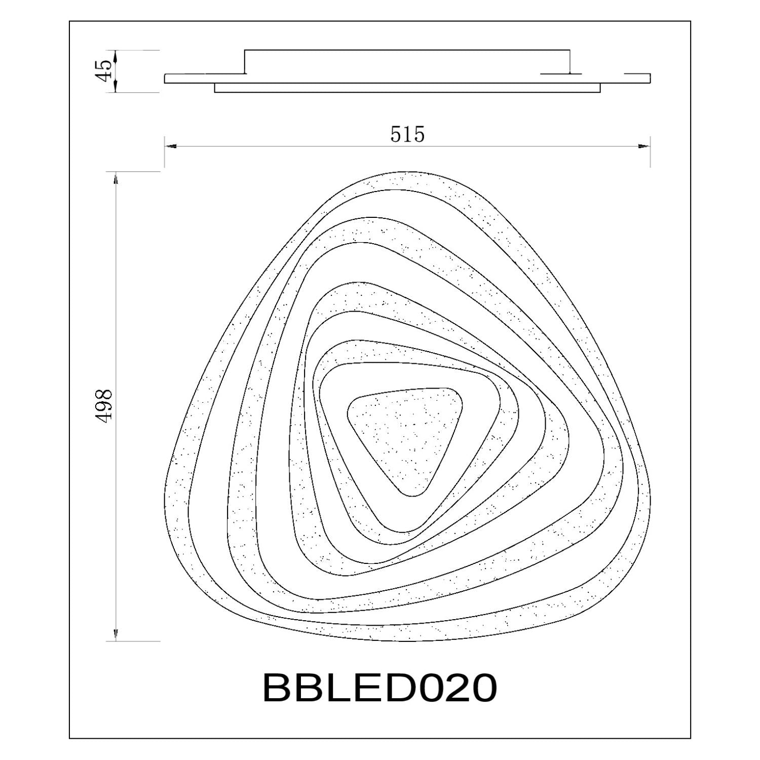Mod. BBLED020 Dim. ( L x P x A ) : mm. 520 x 500 x 45 , potenza, 90 Watt, Telecomando 2.4 G , Luce Regolabile Naturale, Calda, fredda , Luminosità : lm 6300 , Materiale: metallo ed acrilico. Tensione: 220-240 V. , Imballo: . ( L x P x A ) : mm. 580 x 550 x 120