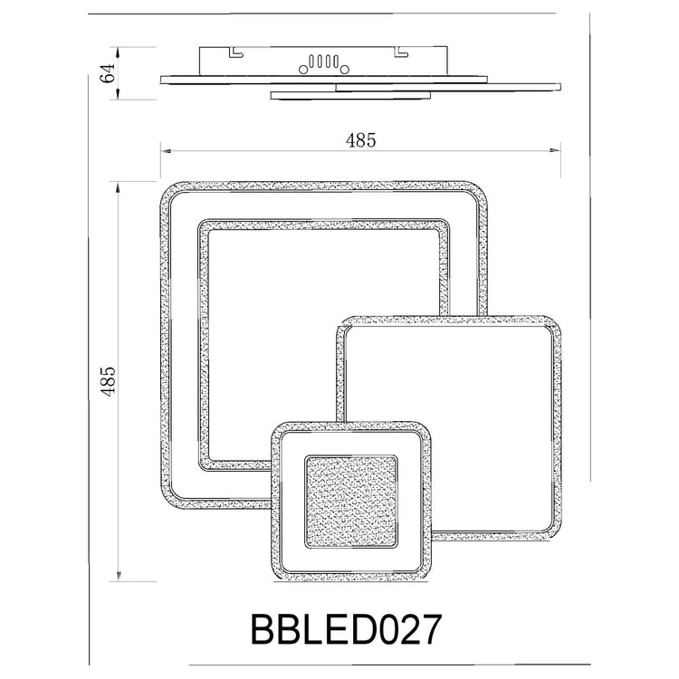 Mod. BBLED027 Dim. ( L x P x A ) : mm. 485 x 485 x 65 , potenza, 93 Watt, Telecomando 2.4 G , Luce Regolabile Naturale, Calda, fredda , Luminosità : lm 5700 , Materiale: metallo ed acrilico. Tensione: 220-240 V. , Imballo: . ( L x P x A ) : mm. 550 x 550 x 200