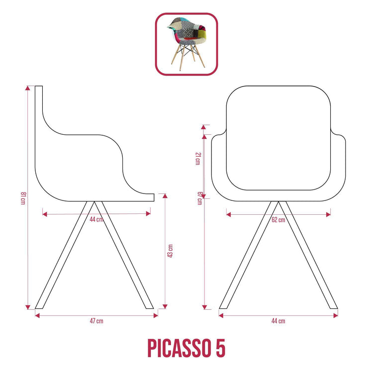 BUYBUY Poltroncina serie Picasso in PP con seduta in spugna ricoperta con stoffa in stile patchwork, piedi in legno di faggio e metallo Patchwork PIC005