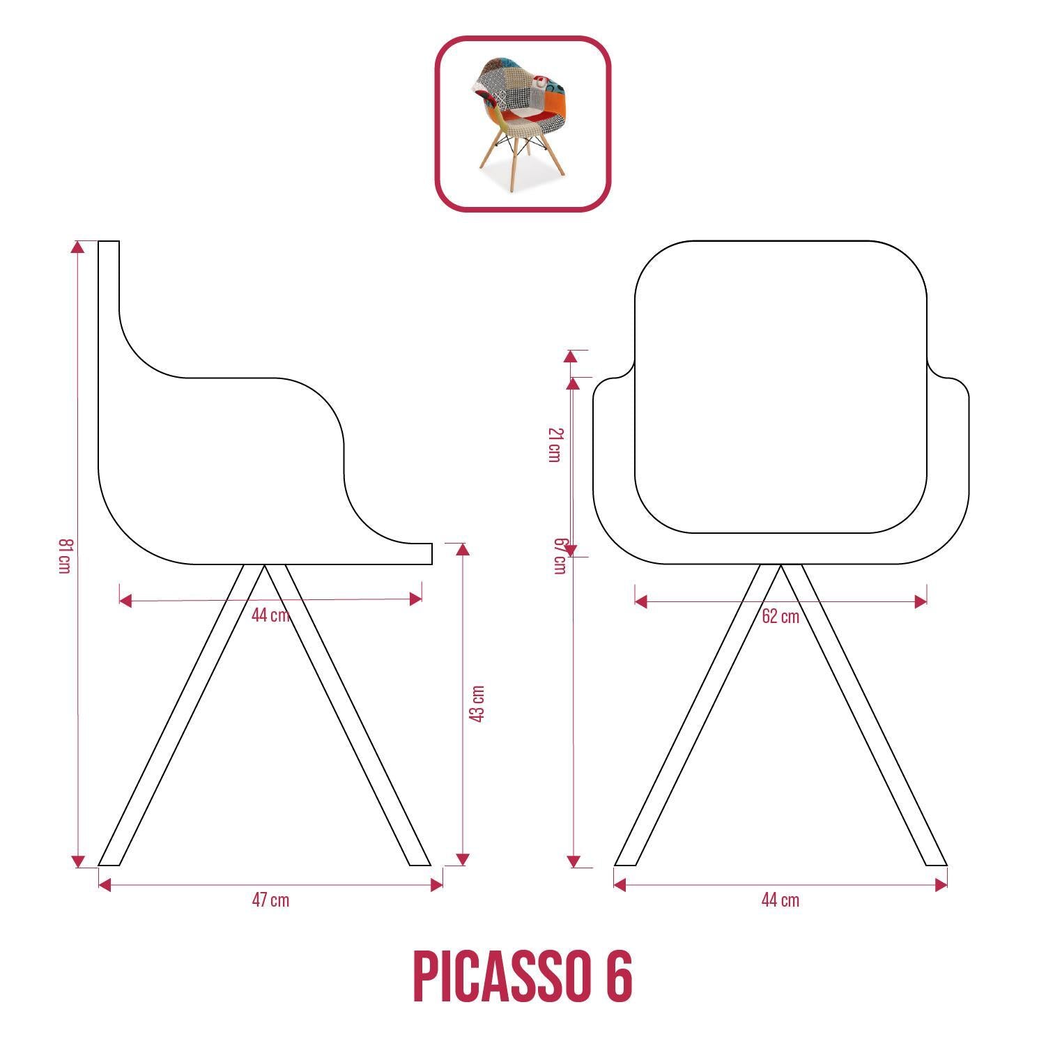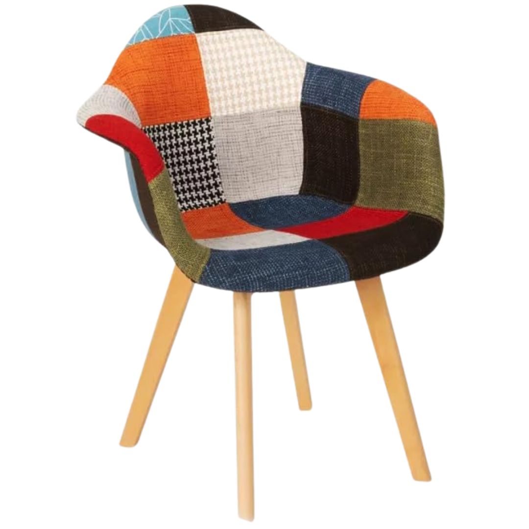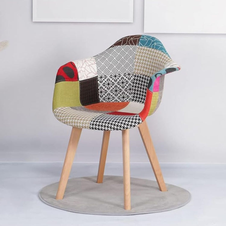BUYBUY Poltroncina serie Picasso in PP con seduta in spugna ricoperta con stoffa in stile patchwork, piedi in legno di faggio Patchwork PIC006