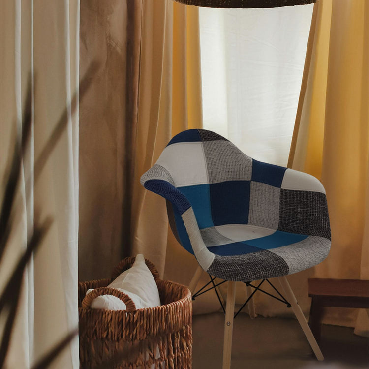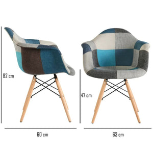 BUYBUY Poltroncina serie Picasso in PP Seduta in spugna ricoperta con stoffa Stile patchwork, piedi in faggio e metallo Colori freddi PIC015