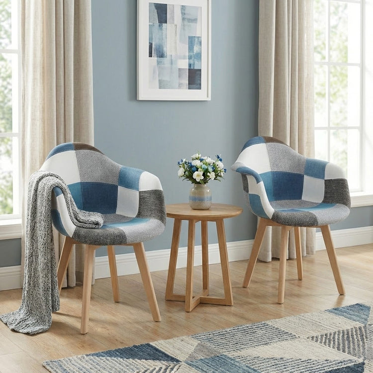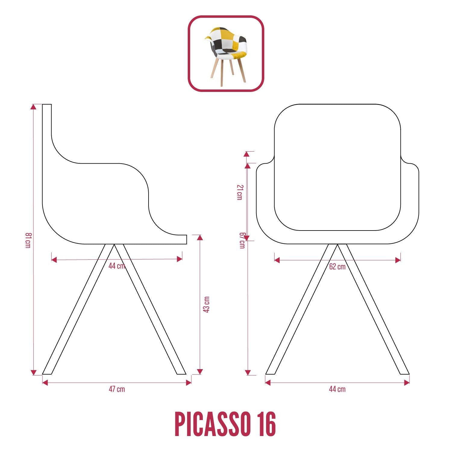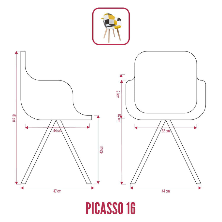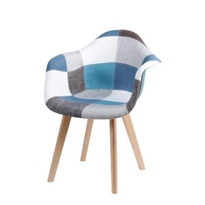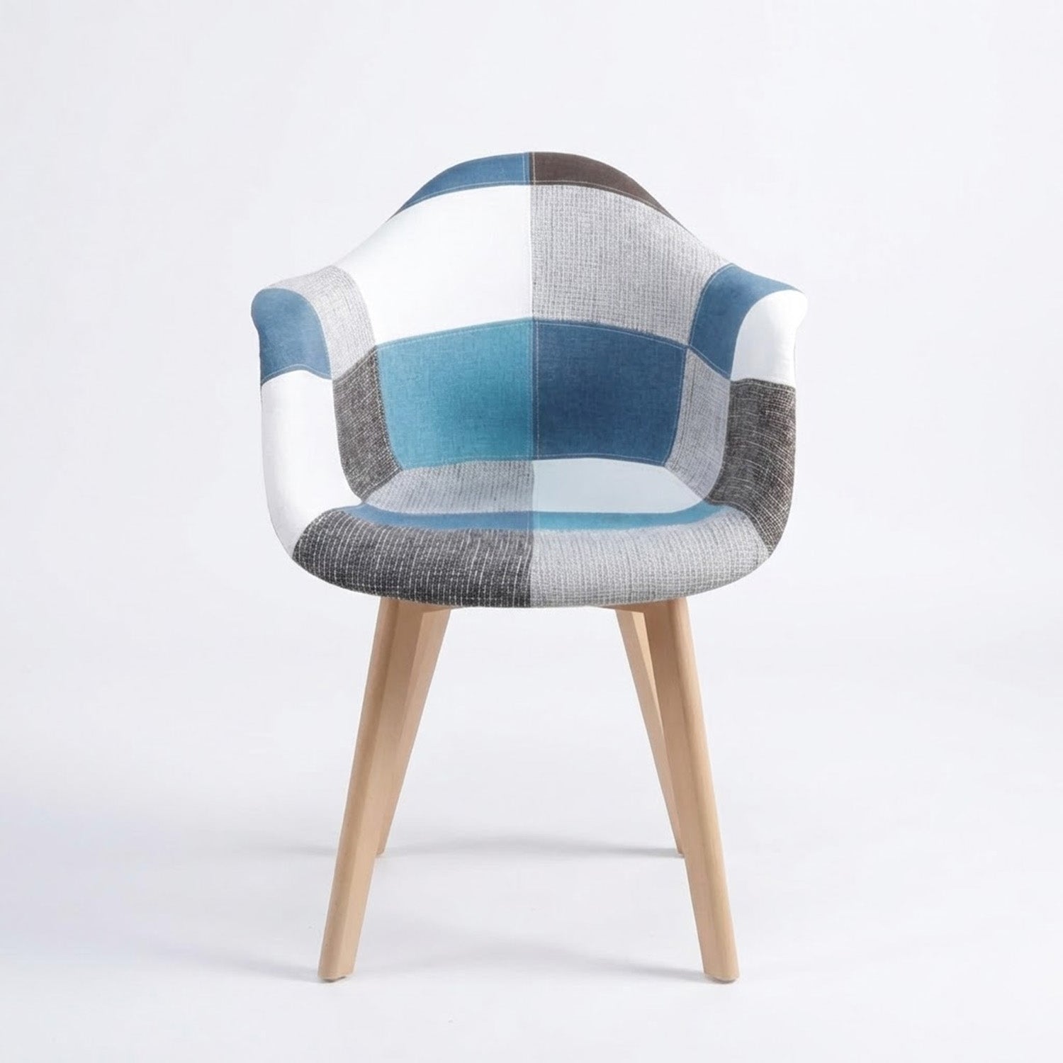 BUYBUY Poltroncina serie Picasso in PP Seduta in spugna ricoperta con stoffa Stile patchwork, piedi in faggio e metallo Colori freddi PIC016