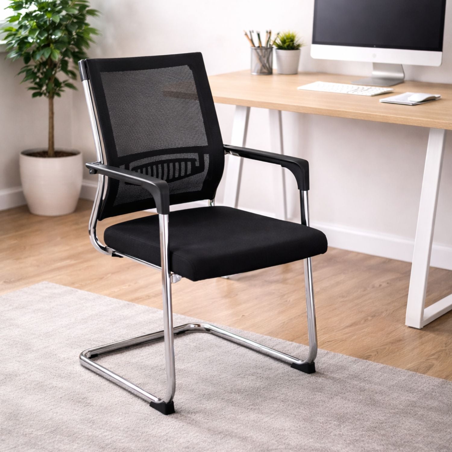 Sedia professionale da ufficio dal design moderno e funzionale, ideale per sale riunioni, uffici e ambienti professionali. Realizzata con struttura in poliestere e alluminio, è dotata di seduta ergonomica e schienale traspirante progettati per offrire comfort e supporto durante l’utilizzo quotidiano.