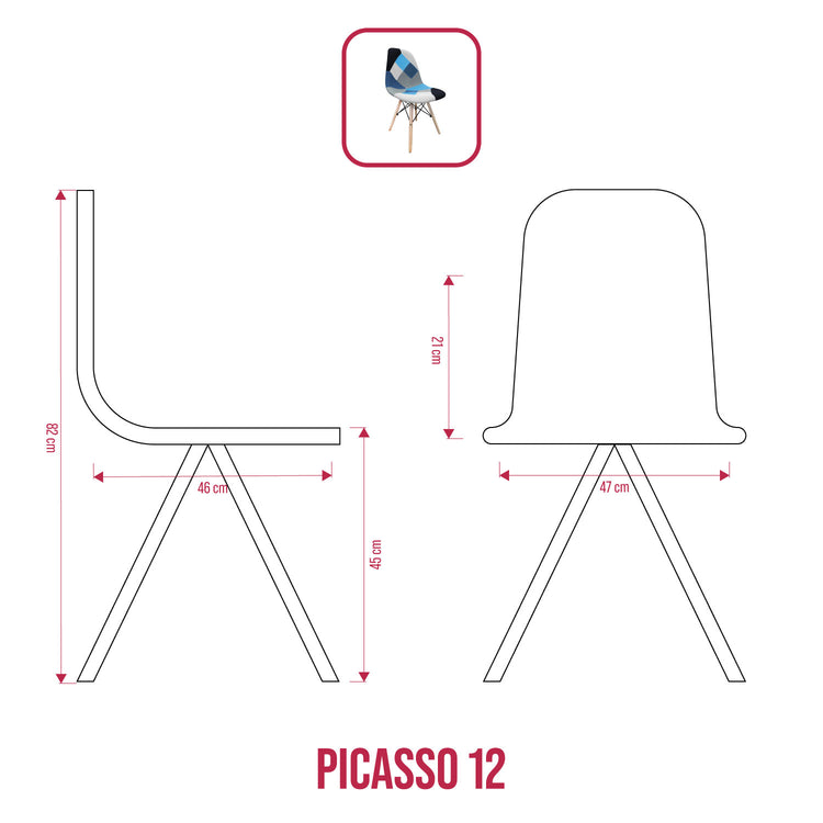 BUYBUY Sedia serie Picasso in PP con seduta in spugna ricoperta con stoffa in stile patchwork, piedi in legno di faggio e metallo Patchwork PIC012