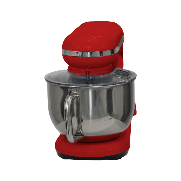 Impastatrice con display digitale, 8 velocità , Timer digitale, Testa sollevabile, potenza 1200 watt max, 6 velocità di rotazione planetaria, funzione pulse, ciotola in acciaio 5,2 litri, Coperchio paraschizzi,sbattitore in acciaio, Gancio impastatore, sbattitore IN TEFLON, Colore Rosso, Misure 25X33X37,5