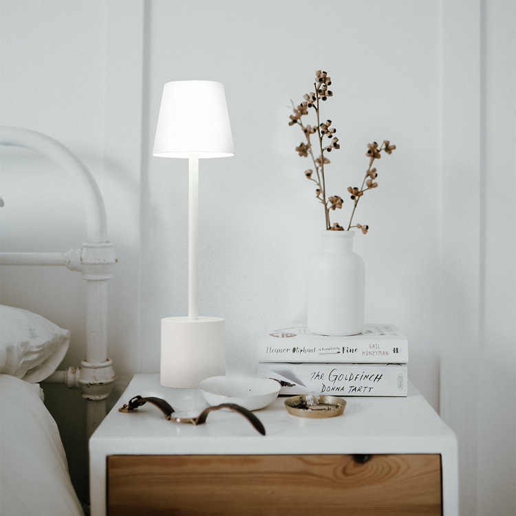 Lampada da Tavolo con ricarica USB, 3 temperature colore: Luca calda, fredda o naturale, 3 livelli di luminosità, fino a 30 ore di funzionamento continuo, regolazione luminosità su 3 livelli predefiniti per regolare in maniera uniforme un gruppo di lampade. Ricarica 3 ore, corpo in alluminio, batteria max 2000 mah, durata media lampada >10.000 ore, potenza 2 Watt, altezza 37,5 cm. , Cavo ricarica USB C incluso.