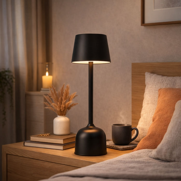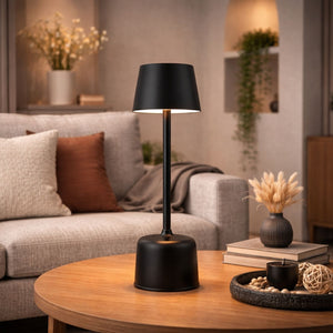 Lampada da Tavolo con ricarica USB, 3 temperature colore: Luca calda, fredda o naturale, 3 livelli di luminosità, fino a 30 ore di funzionamento continuo, regolazione luminosità su 3 livelli predefiniti per regolare in maniera uniforme un gruppo di lampade. Ricarica 3 ore, corpo in alluminio, batteria max 2000 mah, durata media lampada >10.000 ore, potenza 2 Watt, altezza 37,5 cm. , Cavo ricarica USB C incluso.
