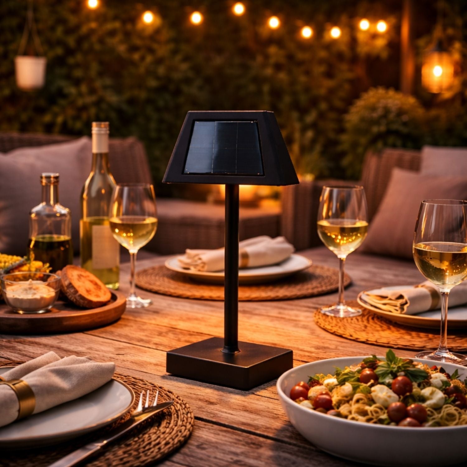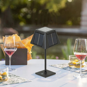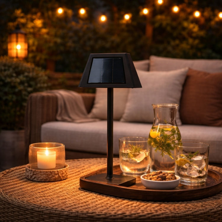 Grazie alla protezione dagli spruzzi d'acqua ( grado di protezione IP44 ), la lampada solare da tavolo è perfetta anche per la terrazza, il balcone o il giardino.