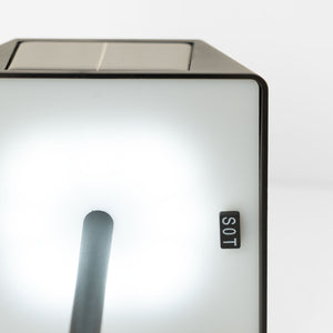 Toccando leggermente il tastino sulla parte superiore della base, si sceglie il colore della luce ( Calda, fredda o naturale) e successivamente si accende e si spegne; il tocco prolungato consente una regolazione continua su 3 livelli. La batteria al litio 1800 mah di alta qualità garantisce un'eccellente durata fino a 10 ore e particolare longevità.