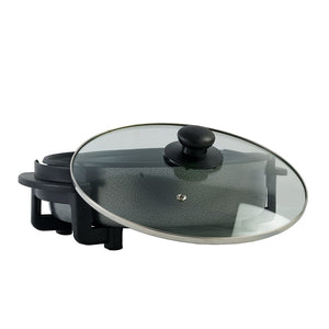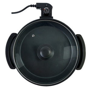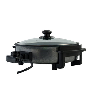PYRAMIDEA Piatto Multifunzione Elettrico per Pizza Potenza 1500W con Coperchio e Termostato in Acciaio Colore Nero PM1500